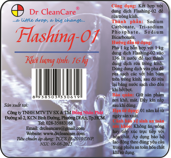 - Pha 1 kg hỗn hợp với 1 kg dung dịch Flashing-02 vào 136 lít nước để tạo thành dung dịch rửa tròng kính. Dùng dung dịch vừa pha để rửa sạch các vết bẩn bám trên tròng kính, sau đó rửa lại bằng nước sạch cho đến khi hết bọt.